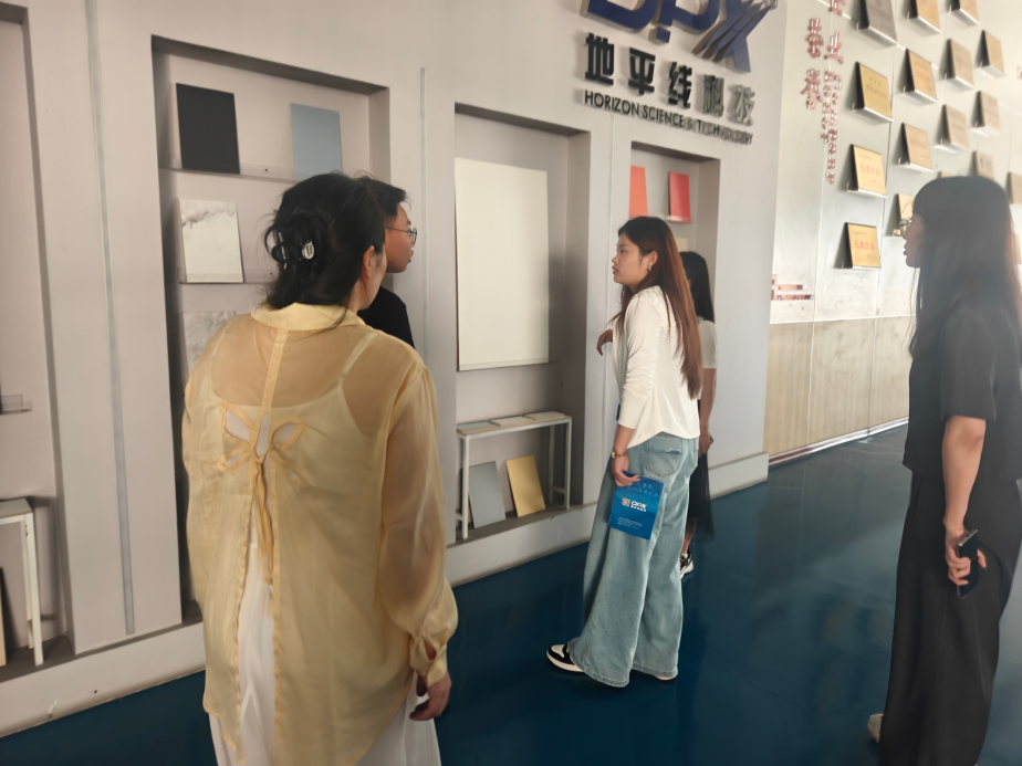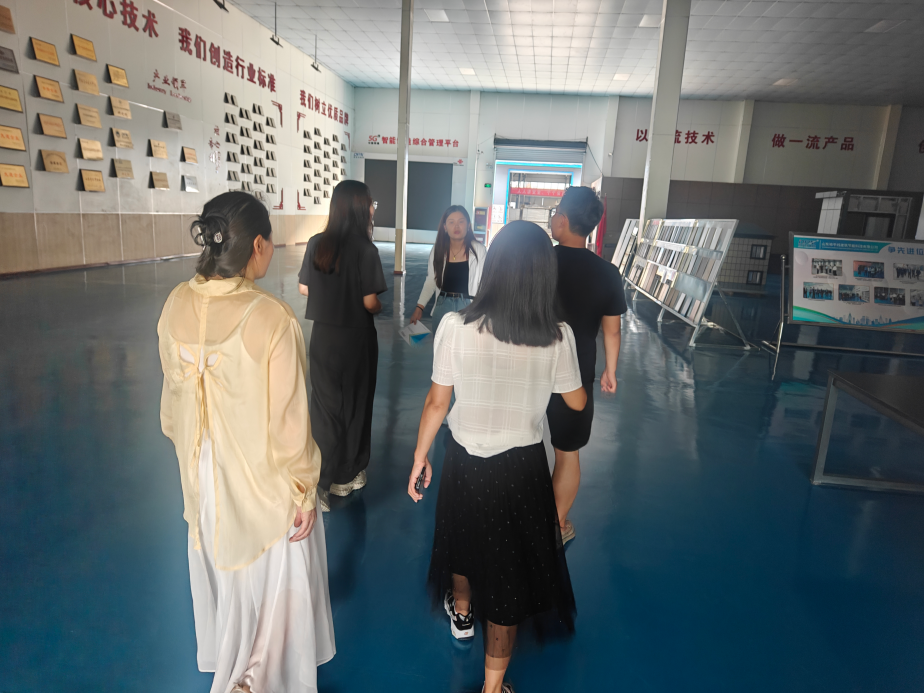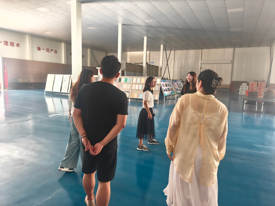访问中,教师团队在公司周经理陪同下,参观研发中心、生产车间及成果展示厅,深入了解企业在建筑节能材料、绿色建造技术等领域的研发成果与应用实践。双方围绕“产学研协同创新与人才共育”座谈,就共建实习实践基地、联合科研、人员交流、开设前沿课程等达成初步共识。