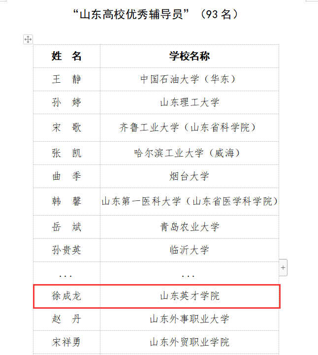 新葡的京集团辅导员荣获2023年“山东高校优秀辅导员”荣誉称号