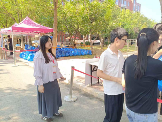 为保障新生及时有效的领取物资,学生领取物资点设置在离新生宿舍比较近的位置,大大缩减了学生搬运物资的时间。