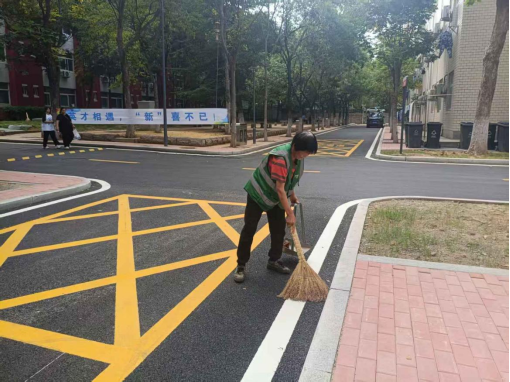 为确保校园环境整洁为全校师生提供良好的环境。学校物业人员对校园道路、教学楼、迎新点、宿舍周边、卫生间等公共区域进行“地毯式”清洁。及时清理垃圾、杂物;垃圾桶实行“满即清”,避免异味。