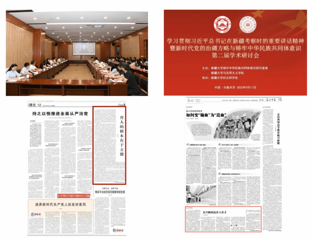 哲学社会科学领域积极贯彻落实习近平总书记视察beat365平台官方网站时的讲话精神。一是举办系列研讨会。分别举办了“育人的根本在于立德”专题研讨会和“学习贯彻习近平总书记在新疆考察时的重要讲话精神暨新时代党的治疆方略与铸牢中华民族共同体意识第二届学术研讨会”,来自全国各地的专家参与了研讨。二是深入研究阐释。大学党委书记许咸宜在人民日报、光明日报分别发表题为“育人的根本在于立德”“为兴疆固边育人育才”的文章,学校专家学者围绕总书记的讲话精神撰写各类学术文章共30余篇,掀起了学习贯彻习近平总书记重要讲话精神的热潮。三是发挥思政课主渠道作用。通过集体备课,召开专题教学研讨会等形式贯彻落实习近平总书记的重要讲话精神。先后举办“开好讲好新疆地方思政课 推动学校铸牢中华民族共同体意识教育”《思想道德与法治》课程专题教学研讨会。