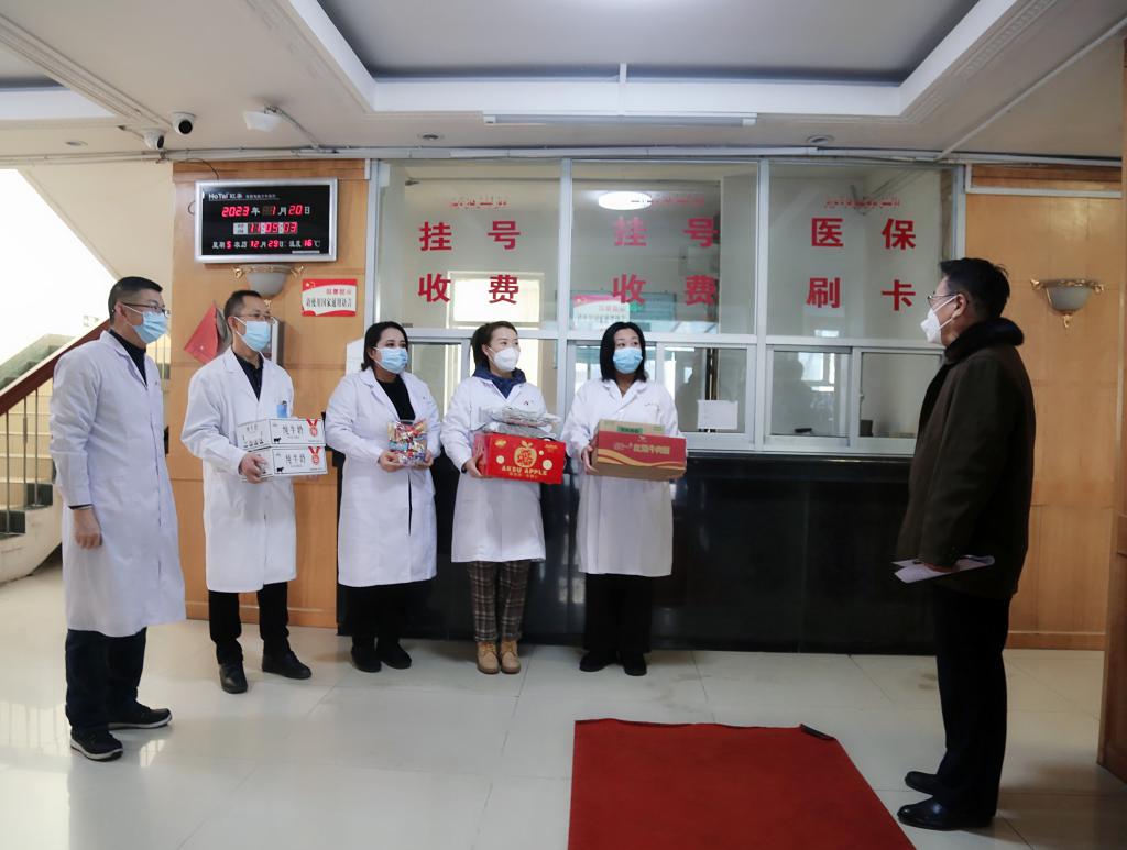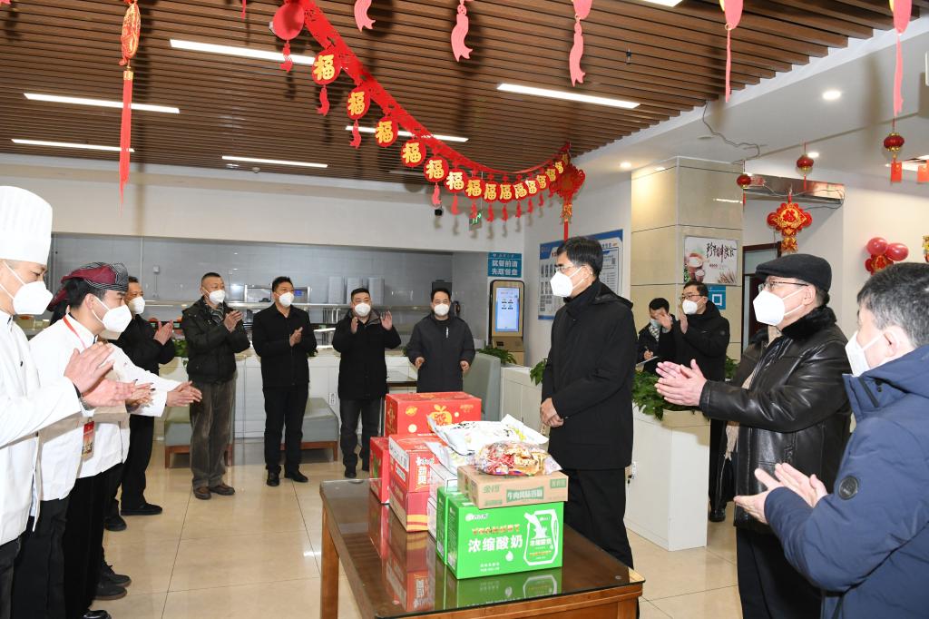 2023年春节来临之际,大学党委书记许咸宜及部分大学领导看望慰问春节期间坚守在一线工作岗位的干部职工,向他们致以节日的问候和新春的祝福,并发放了慰问品。
