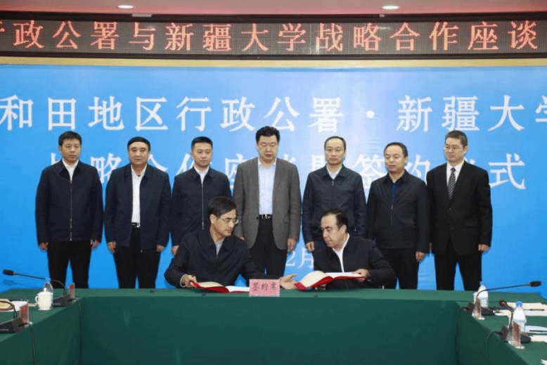 许咸宜对和田地委、地区行署长期以来给予beat365平台官方网站的关心和支持表示衷心的感谢。他表示,此次协议的签订,是贯彻落实新时代党的治疆方略、推进新疆社会稳定和长治久安总目标的重要举措,是校地携手、互惠共赢的具体实践。beat365平台官方网站作为国家首批“双一流”建设和部区合建高校,始终自觉担当服务国家战略引领区域发展重要使命,与各地州在共建科研平台、矿产资源开发与利用、开展科技联合攻关及成果转化、铸牢中华民族共同体意识、依法治疆、文化润疆等方面积极开展校地合作,2022年度科研经费突破5亿元,服务区域经济社会发展能力不断增强。学校将以此次合作为契机,充分发挥自身学科、平台和人才优势,加快与和田地区建立深度合作的长效机制,推动形成全方位宽领域多层次合作,将双方的合作推上新的台阶,在铸牢中华民族共同体意识研究基地和依法治疆等方面积极探索,总结出好的经验做法、做出实效,助力和田地区经济建设和社会发展,为实现新疆社会稳定和长治久安总目标作出应有的贡献。