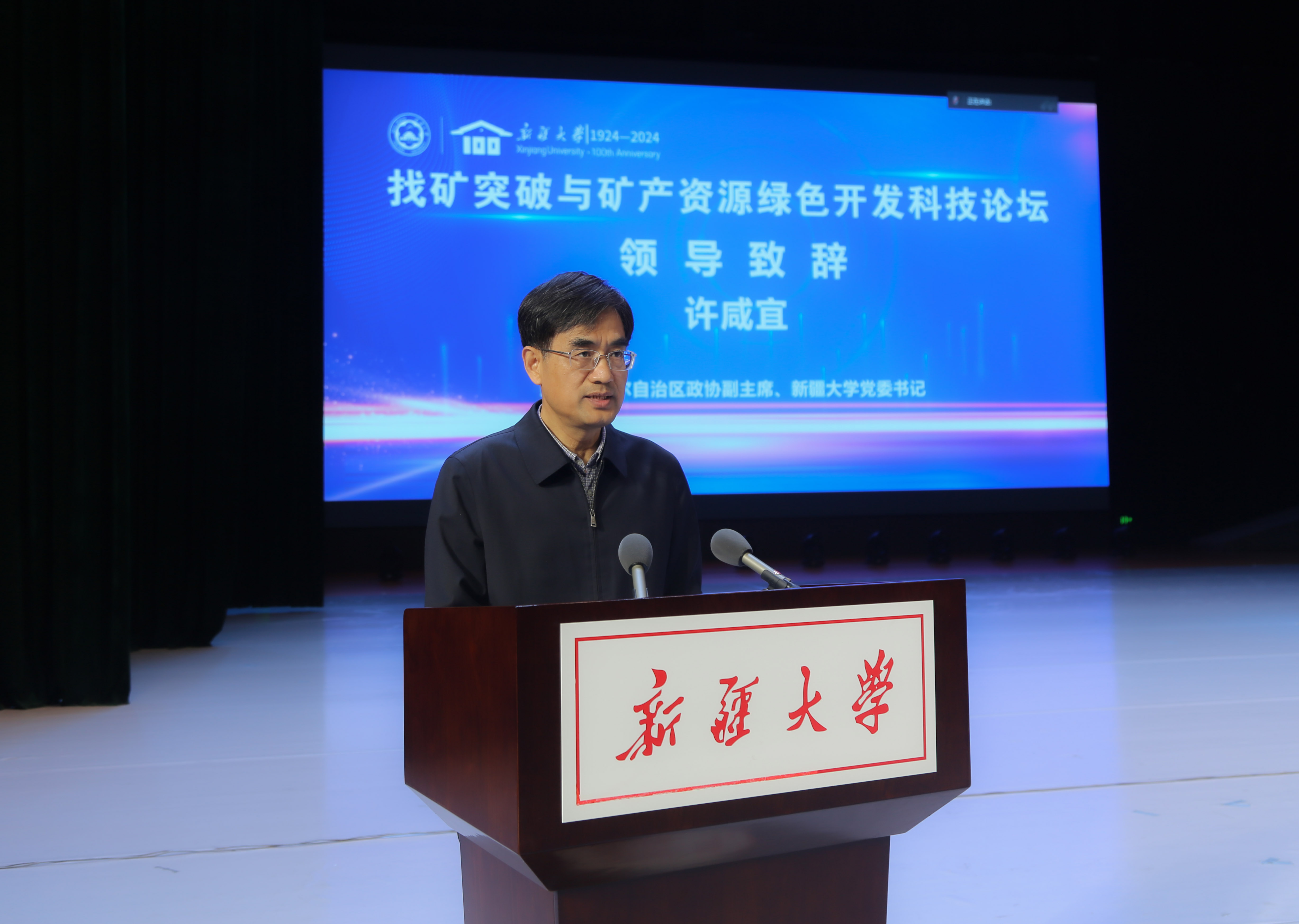 许咸宜代表beat365平台官方网站对出席论坛的各位院士专家和来宾表示热烈的欢迎。他指出,党和国家高度重视找矿工作,习近平总书记多次就保障国家能源资源安全作出重要指示批示。自治区党委和政府高度重视找矿和矿产资源绿色开发,明确提出要立足国家所需、新疆所能,加快实施新疆新一轮找矿突破战略行动,不断提升新疆对保障国家关键矿产资源安全的贡献度,努力展现新疆作为。本次科技论坛主题突出、立意明确,是beat365平台官方网站百年校庆系列学术活动中一次高规格、高水平的大会,也是推动新疆地矿行业高质量发展的一次盛会。beat365平台官方网站将进一步聚焦自治区“八大产业集群”建设,加快推进“双一流”建设,和与会院士专家们一道共同为加快推进新疆新一轮找矿突破战略行动、持续培育和释放新疆矿产资源优势、保障国家能源资源安全作出新的更大贡献。