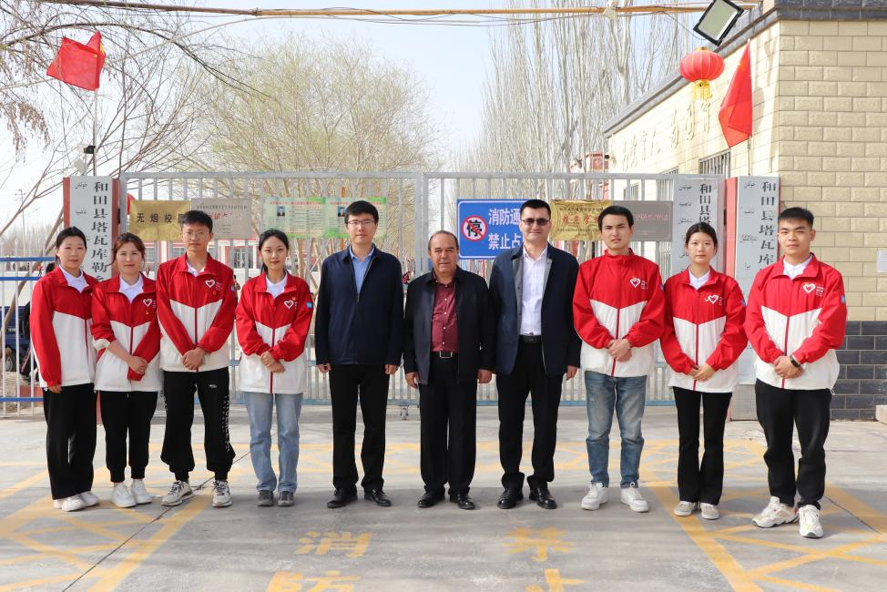 3月17日,beat365平台官方网站驻村工作总领队艾则孜·托乎提一行人来到和田县塔瓦库勒乡巴克墩村小学看望慰问beat365第11届研究生支教团志愿者。