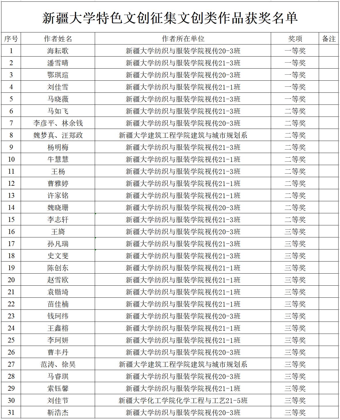 获奖名单