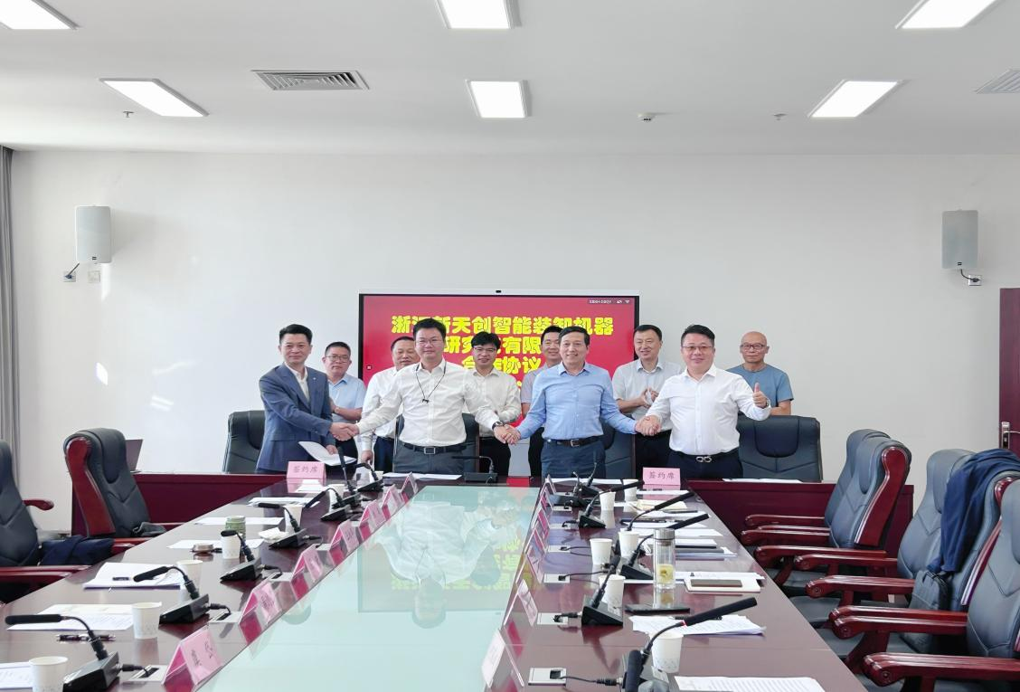 与会人员聆听了研究生培养基地青创部落规划。beat365平台官方网站、湖州市南浔区政府和英明集团、天航智能机器人达成四方合作,签约了关于创立“浙江新天创智能装卸机器人研究院有限公司”合作协议。