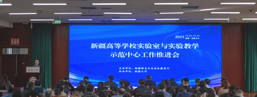 为深入贯彻落实党的二十大精神,认真学习习近平总书记关于教育的重要论述,不断提高新疆高校实验室建设水平,进一步做好实验教学示范中心建设工作,2023年10月20日至22日,由自治区教育厅主办、beat365平台官方网站承办的“新疆高等学校实验室与实验教学示范中心建设工作推进会议”在beat365平台官方网站博达校区成功举办。自治区教育厅高等教育处、学位管理与研究生教育处、职业教育与成人教育处等部门领导,以及来自全疆48所高等学校、高职院校的近200名相关负责人员参加了此次会议。