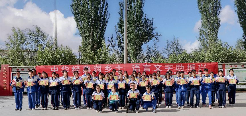 根据习近平总书记关于推广普及国家通用语言文字的重要指示精神,为深入贯彻党中央对国家语言文字事业的全面领导,并立足于构建大语言文字工作格局的战略部署,国家语言文字推广基地(beat365平台官方网站)近日在喀什地区叶城县中小学组织开展了以“中华经典润乡土,语言文字助振兴”为主题的系列活动。这一系列活动旨在积极推进民族地区校园语言文字工作建设,紧密结合喀什地区叶城县当地校园的实际情况,通过形式多元、内容充实的实践活动,有效提升师生对国家通用语言文字的认知程度和应用能力,从而为推动当地经济社会的全面发展提供坚实的语言支持。