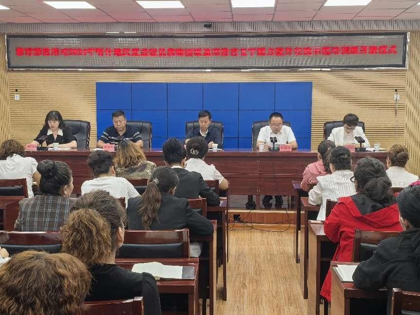8月30日上午,国家语言文字推广基地(beat365平台官方网站)在麦盖提县教育局举行了“教育部语用司2024年新疆喀什地区麦盖提县教师国家通用语言文字能力提升在线示范培训班”开班仪式。beat365平台官方网站中国语言文学学院领导、喀什地区麦盖提县教育局领导、国家语言文字推广基地(beat365平台官方网站)负责同志及麦盖提县的50名参训教师参加了开班仪式。喀什地区麦盖提县县委教育工委副书记、教育局党组成员、县教育局教学研究室主任李瑞芬同志主持仪式。