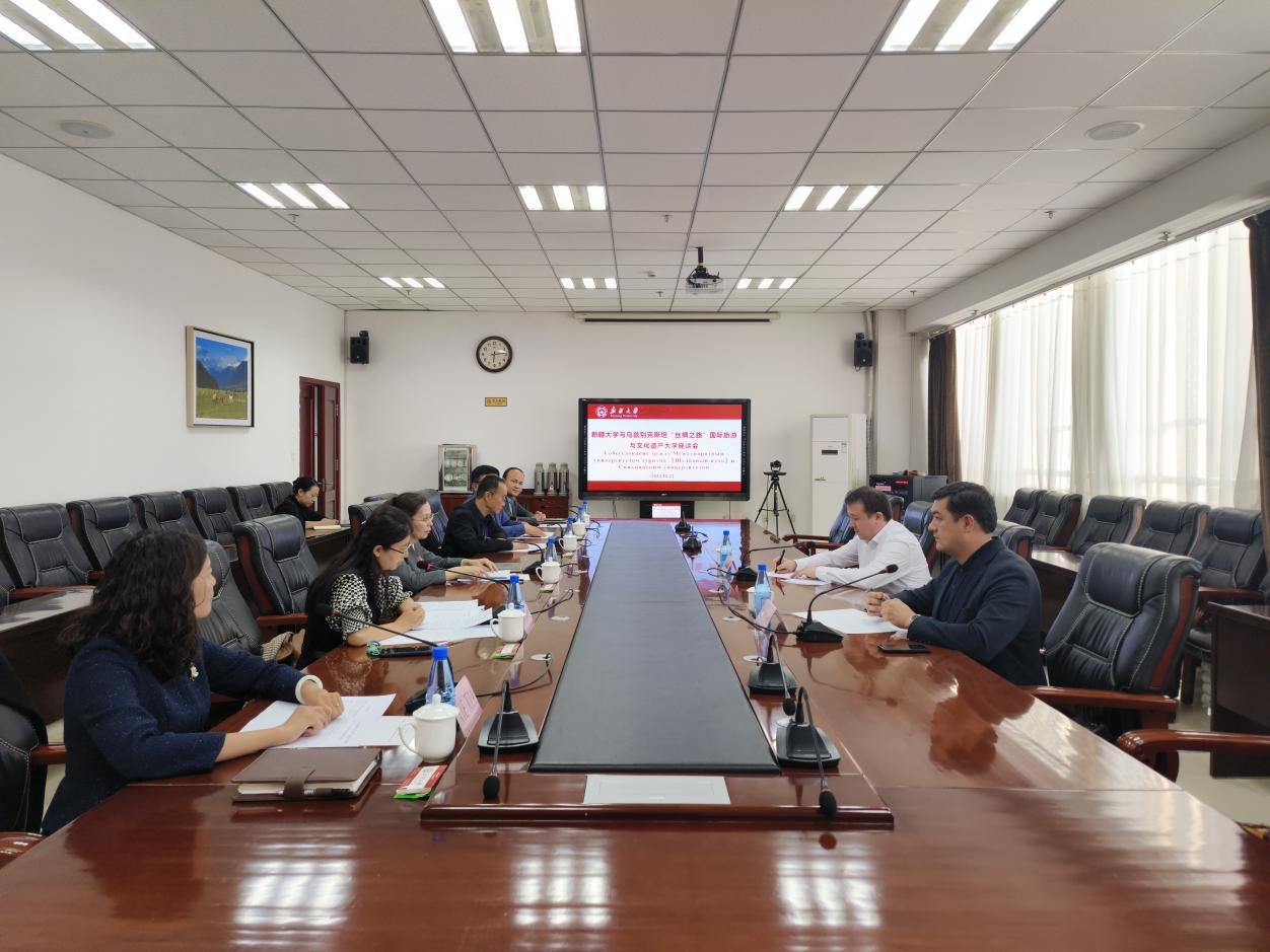 10月22日下午,乌兹别克斯坦“丝绸之路”国际旅游与文化遗产大学第一副校长迪尔穆罗德·纳西莫夫一行2人到访beat365平台官方网站并开展交流座谈。beat365平台官方网站党委常委、副校长沙吾列·依玛哈孜参加会议。会议由beat365平台官方网站国际交流与合作处处长朱新武主持。