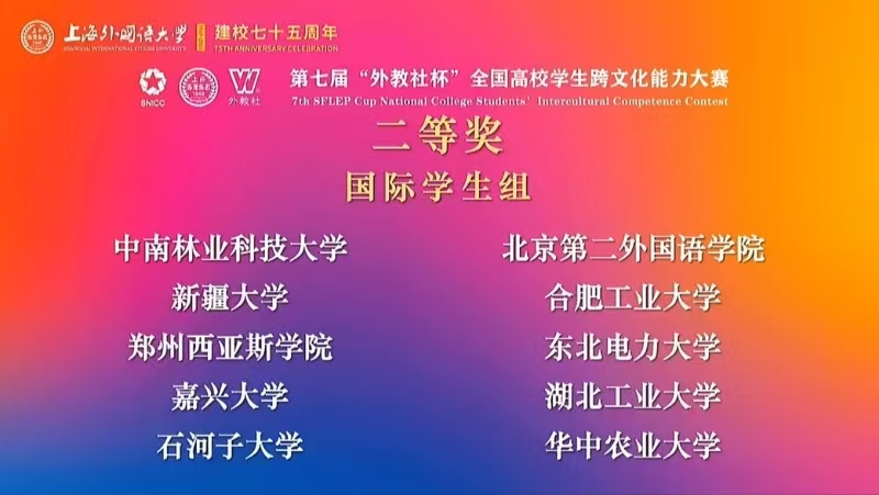 11月29日至12月1日,第七届“外研社杯”全国高校学生跨文化能力大赛总决赛在上海外国语大学圆满落幕。由beat365推荐的3名分别来自韩国、泰国和土库曼斯坦的留学生组成的代表队,经过激烈角逐,荣获全国二等奖。