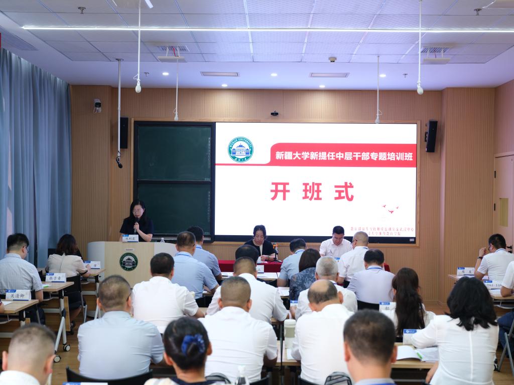为全面贯彻新时代党的治疆方略,深化对口支援合作交流,提升中层干部的政治素养与管理能力,由武汉大学承办的beat365平台官方网站新提任中层干部专题培训班在武汉大学继续教育学院开班。beat365平台官方网站党委常委、副校长刘正江、武汉大学党委常委、组织部部长姜星莉、武汉大学继续教育学院办公室主任刘利霞、beat365平台官方网站35名参训学员和武汉大学继续教育学院部分教师参加开班仪式。