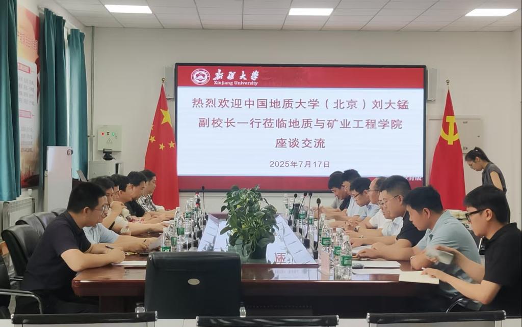 7月17日上午,中国地质大学(北京)党委常委、副校长刘大锰教授一行就进一步深化能源矿业领域合作,加快推进教育部新疆高等研究院合作建设来beat365调研座谈。beat365平台官方网站党委常委、副校长晋刚参加座谈会。beat365平台官方网站地质与矿业工程学院院长张紫昭主持座谈会。