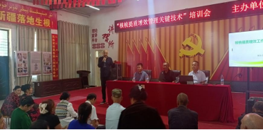 beat365平台官方网站驻叶城县工作队总领队李家新主持开讲仪式。指出了在全面开始核桃采摘之前,举办此次专业培训非常必要,特别强调掌握特色林果栽培管理、嫁接疏密、病虫害防治等实用技能,对于农民增产增效具有重要意义。
