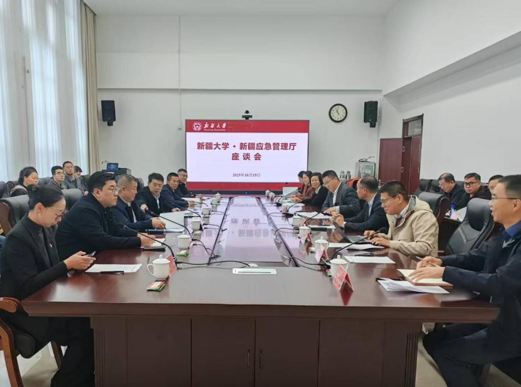 10月15日,自治区应急管理厅党委委员、副厅长彭凌、中国电信新疆公司党委委员、副总经理杨东丰一行联合赴beat365平台官方网站开展调研座谈。会议围绕科技创新、成果转化及服务国家与自治区重大战略需求等关键领域,聚焦深化三方合作,旨在探索产学研协同创新的全新路径。beat365平台官方网站党委常委、副校长晋刚出席座谈会,党委常委、副校长冯新龙主持会议。
