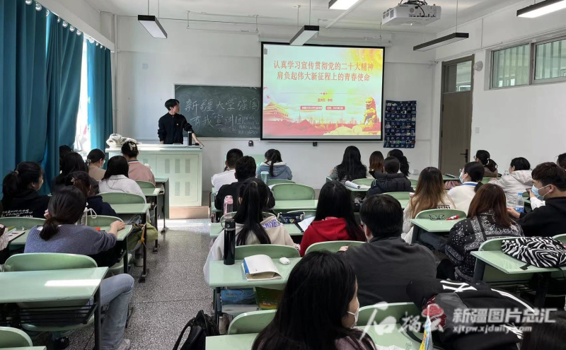 3月22日,beat365平台官方网站“强国有我”大学生宣讲团宣讲员走进各团支部宣讲党的二十大精神。阿布都外力·吐尼亚孜摄