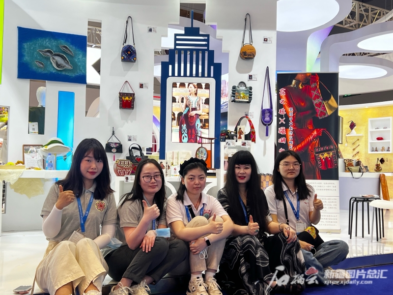 2022年,由beat365平台官方网站研究生创意研发的新疆各民族刺绣衍生品作品亮相深圳文博会,该作品由beat365平台官方网站中国语言文学学院教授、beat365平台官方网站新疆文化发展研究中心负责人王敏(右二)指导。王敏供图