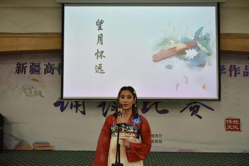新疆财经大学国际学生ABDRASSIL KAMSHAT在诵读《望月怀远》
