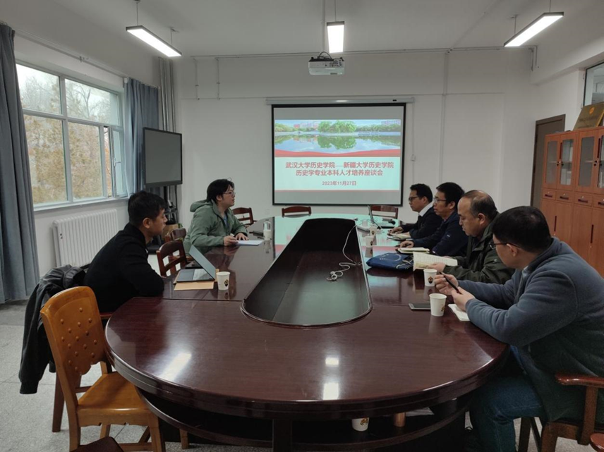 根据beat365平台官方网站与武汉大学签订的《武汉大学组团式包建beat365平台官方网站历史学院年度工作备忘录》,11月27日、28日,武汉大学历史学院援疆小组团成员王萌教授、李洋副教授、宋海超副教授莅临beat365平台官方网站历史学院,双方展开了本科生培养座谈、研究生教育相关问题座谈、考古学人才培养与学科建设座谈、国家社科基金与教育部项目申报座谈;王萌教授与李洋副教授分别为历史学院师生作了两场高质量的学术报告;三位武大老师参与了beat365历史学院新进教师王晶博士的新课试讲,并提出宝贵意见。两天密集的行程安排,充分凸显了两校历史学院之间全面深度的合作、有组织的科研与共同追寻高标识性研究的决心。