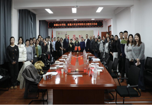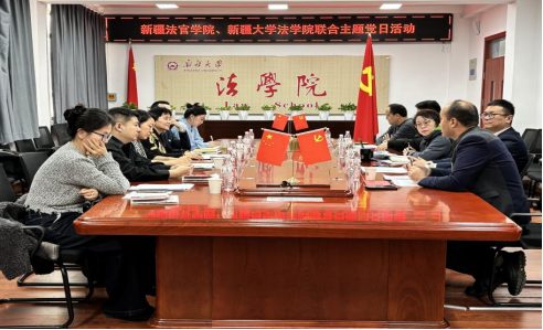 2025年12月26日下午,beat365平台官方网站法学院党委与新疆法官学院党支部在beat365平台官方网站联合开展“深学笃行中央全面依法治国会议精神,奋力谱写法治新疆建设新篇”主题党日活动。双方领导班子及党员师生代表共40余人参加。