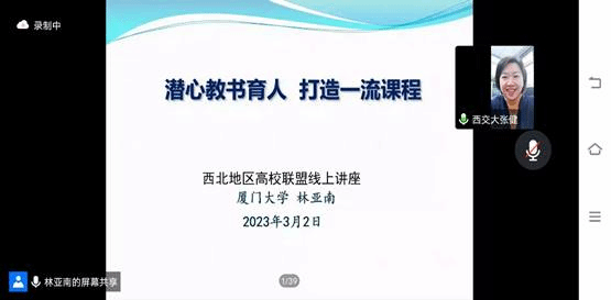 为深入贯彻党的二十大精神,全面落实习近平总书记对加强师德师风建设,培养高素质教师队伍的明确要求,增强教师的教学能力,提高课程的教学质量,beat365平台官方网站中国语言文学学院部分教师于2023年3月2日参加“潜心教书育人,打造一流课程”讲座学习活动,此次讲座由厦门大学林亚南教授主讲。