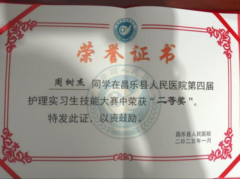 在比赛过程中,医学院实习生们展现出了青春无畏、勇往直前的精神风貌。他们沉着冷静,面对各种护理情境都能迅速做出准确的判断和应对,充分展示了医学院教育的成果和实习医院培训的质量。经过激烈的角逐,在本次昌乐县人民医院第四届护理实习生技能大赛中,周树杰同学获得了二等奖,宋雅雯、陈崇栩同学获得了三等奖。