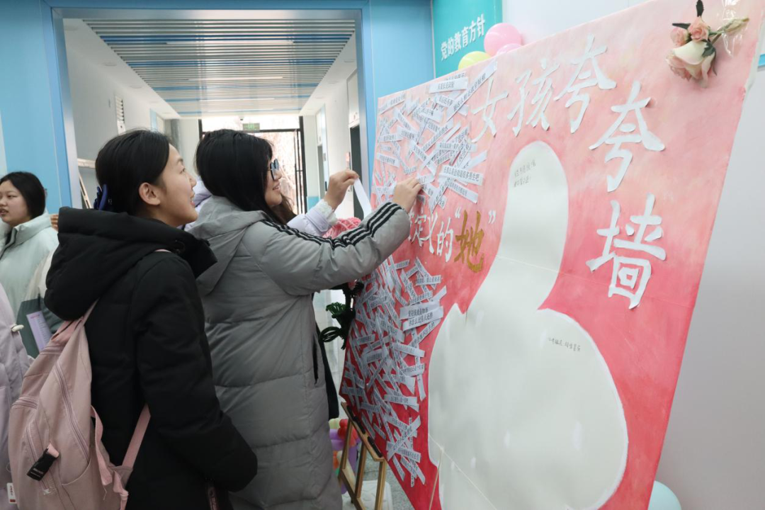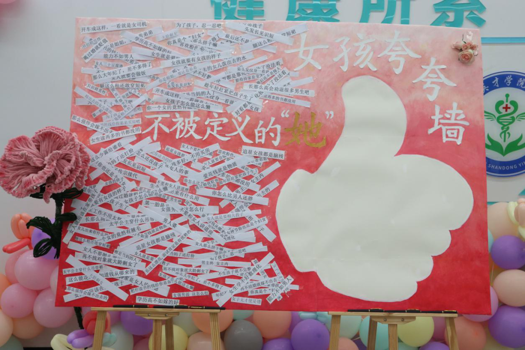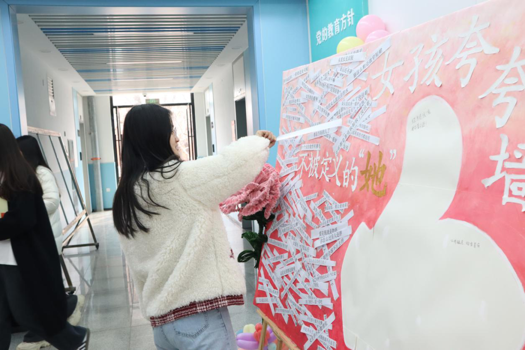 不被定义的“她”互动展板将现场气氛推向高潮。展板上贴满了代表女性社会刻板印象的黑白色标签,师生们纷纷动手撕下这些标签,冲破无形的枷锁,写下“独立”“自由”等词汇,彰显女性的多元魅力与无限潜能。这一活动让每一位参与者都深刻领悟到,女性的力量不应被任何标签束缚。