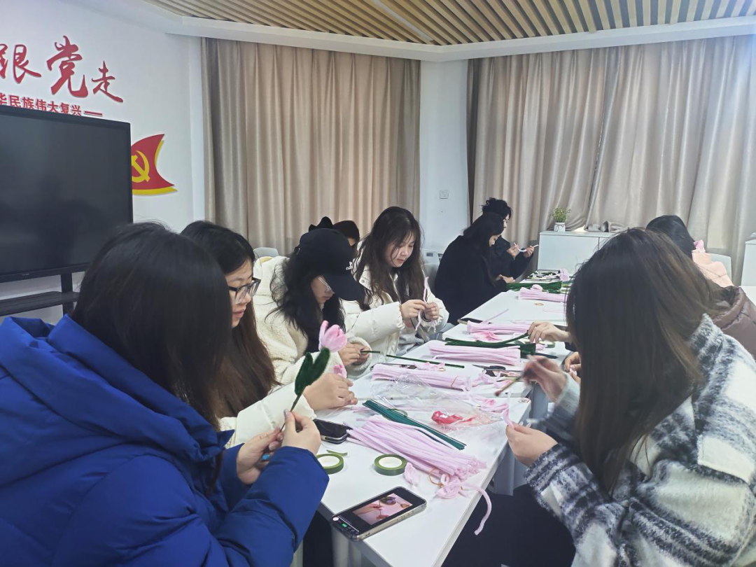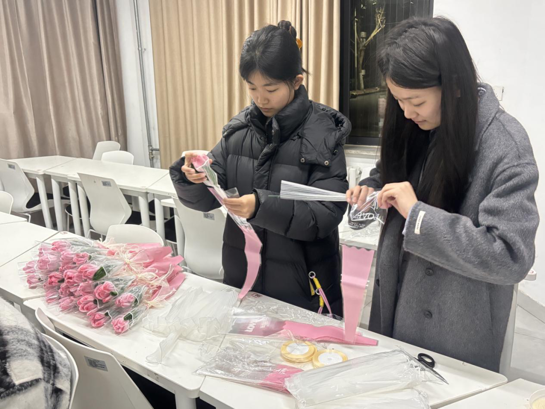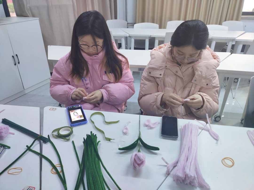 活动开场,温馨的郁金香制作环节拉开帷幕。同学们指尖轻舞,一朵朵娇艳的郁金香悄然绽放。这些饱含心意的花束,承载着对老师们的深深敬意与祝福。当老师们接过花束,脸上绽放的笑容,成为节日里最动人的风景,传递着浓浓的师生情谊。