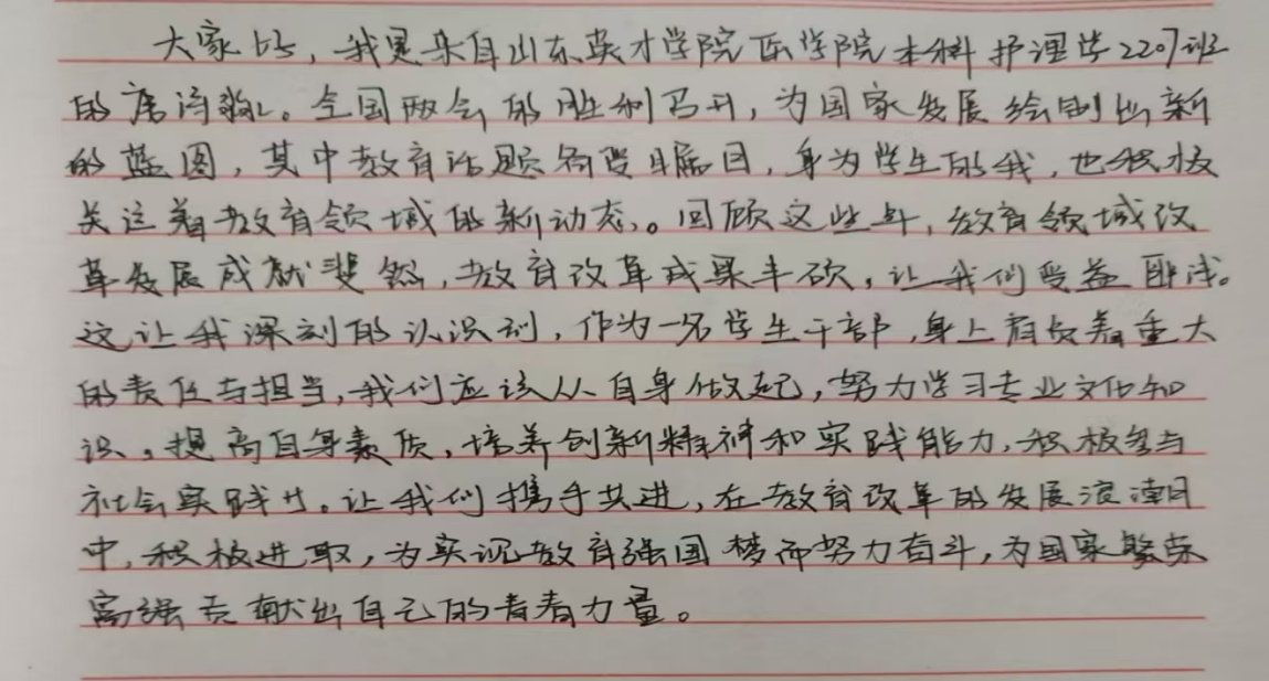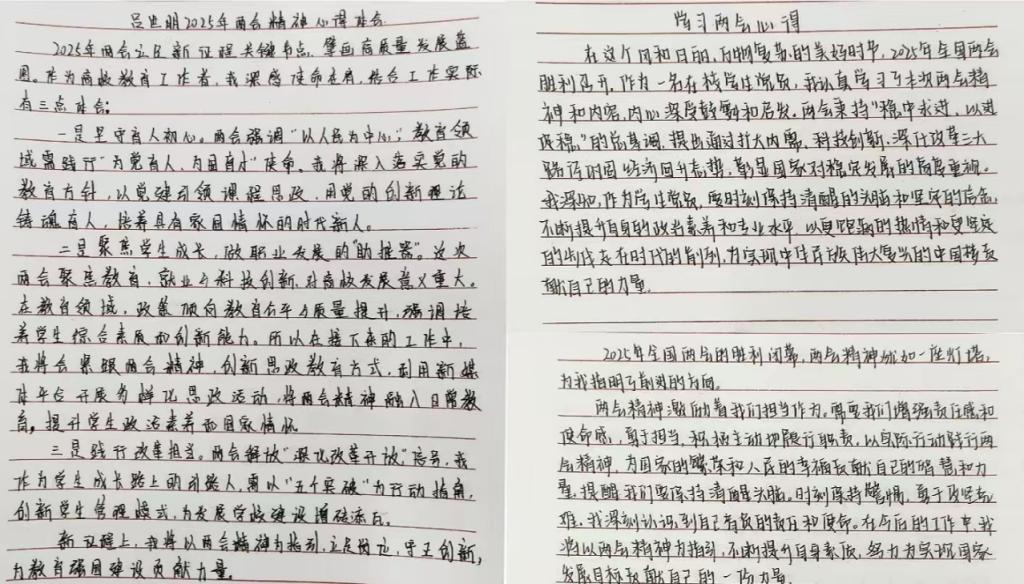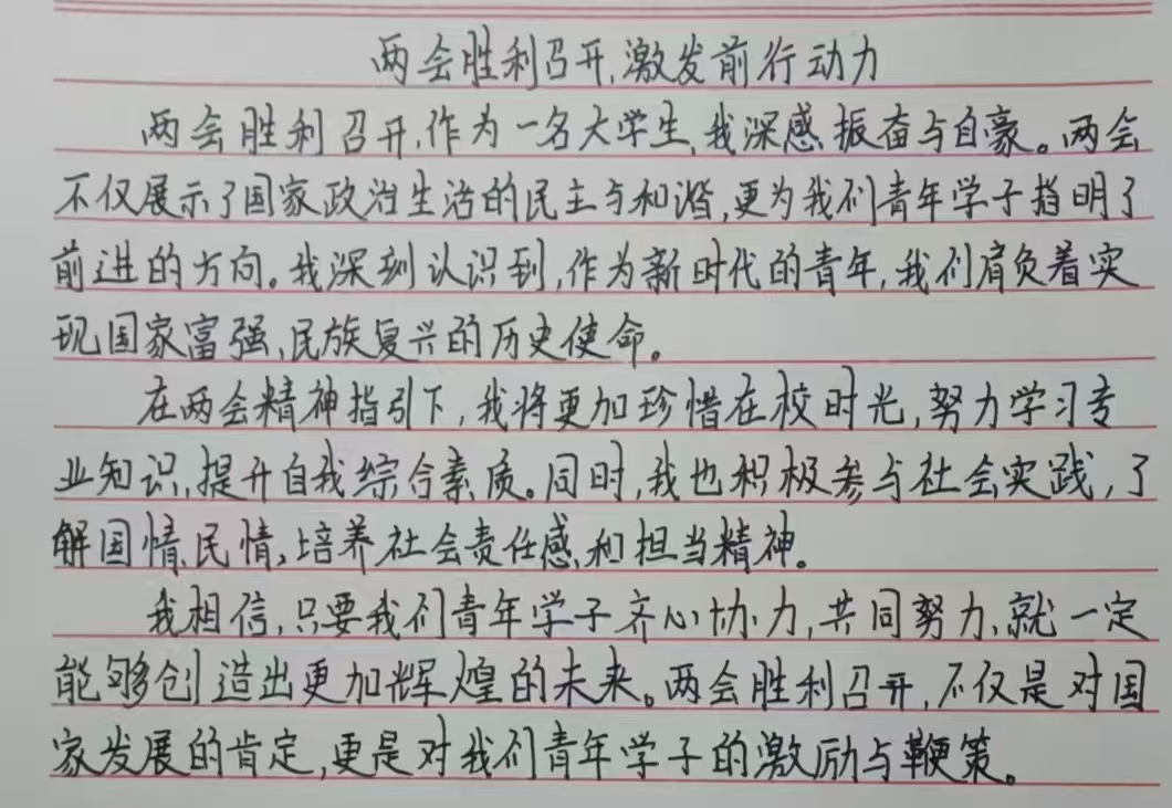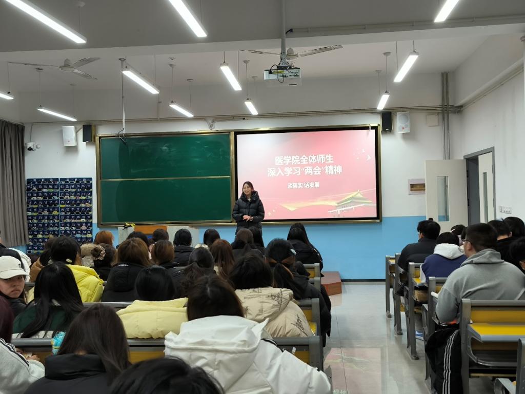 两会精神,犹如激昂澎湃的乐章,奏响了新时代的最强音,激荡在每一个中国人的心间。它如同一面旗帜,高高飘扬在新时代的天空,指引我们奋勇前行。接下来,医学院将继续深入学习贯彻习近平总书记的重要讲话精神,不断增强自身的专业素养与实践能力,为学生们提供更优质的服务。立足本职工作,主动担当作为,用青春践行使命,凝心聚力、锐意进取,努力在健康中国建设、民族复兴的新征程上作出更大贡献。
