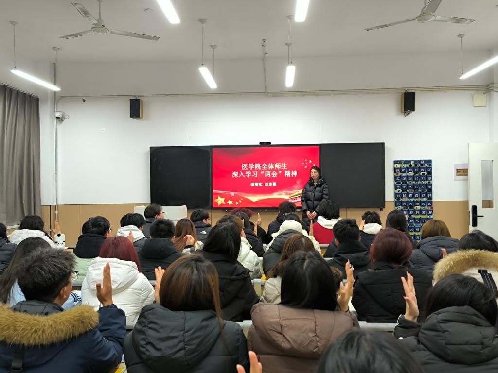 为深入学习全国两会精神,营造学风优良、博学笃行的校园氛围,3月5日,医学院全体师生迅速响应,组织观看开幕式直播,深入学习“两会”精神。