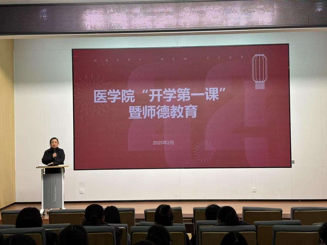 2025年2月21日14:00,医学院“开学第一课”师德教育线下培训在学术报告厅举行,医学院全体教师(含育人育才教师)参加。本次培训由医学院副院长王世芳主持。