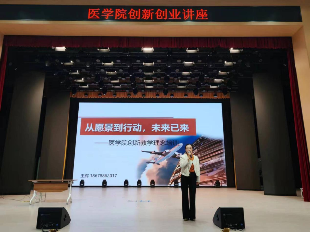 为进一步提高医学院教师的教育教学水平和岗位胜任力,加强护理师资队伍建设,切实提升护理教学质量。3月18日,医学院于音乐厅开展了题为“从愿景到行动,未来已来”的创新创业主题讲座,本次讲座由医学院实验(实训)教学中心主任、创新创业负责人王辉老师主讲,由医学院护理学专业教师、学生参加。