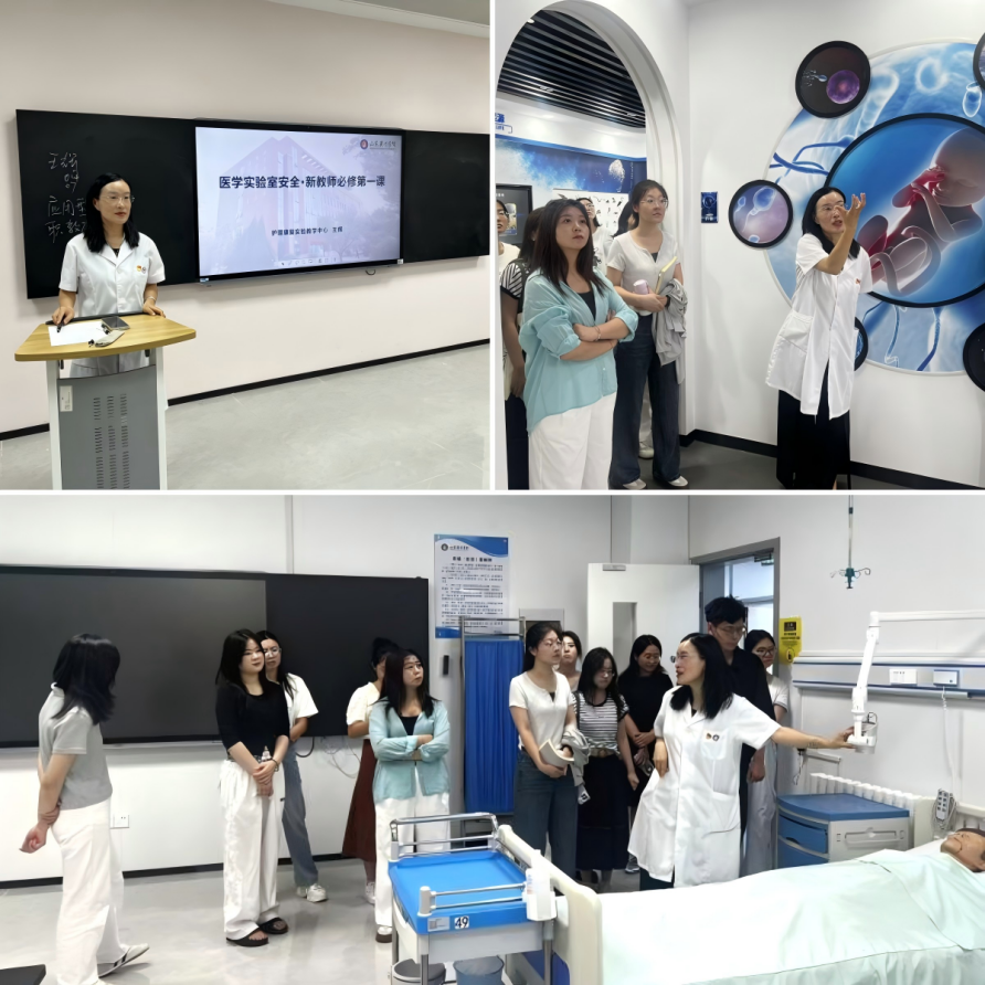 9月2日,新教师们参观了实训实验室,王主任详细介绍了先进教学设备的功能特点与操作规范,现场演示了设备使用流程与安全注意事项。“医学院实践教学是培养医学生临床能力的关键环节,”王主任强调,“新教师必须熟练掌握实训设备使用规范,严守实验实训安全准则,为培养学生实践能力奠定坚实基础。”
