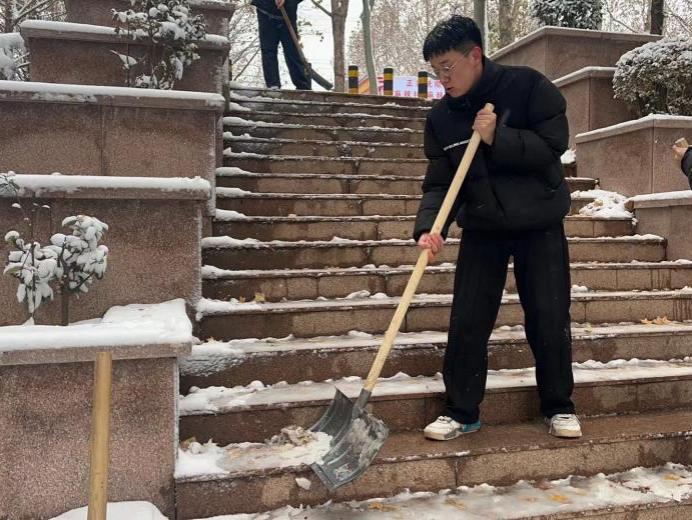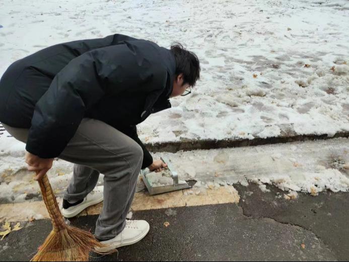 为了清理路面积雪,方便居民群众出行,避免居民受伤,新葡的京集团8814医学院志愿服务团队于2023年12月11日13:00——16:00来到巨河野街道西卢村东汇景苑进行主题为“清雪除冰,志愿同行”的第三次志愿服务活动。
