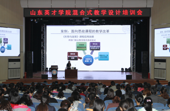 为使教学管理人员和广大教师理解混合教学的原理、方法,掌握信息化条件下的教学设计原理和教学模式,10月19日,新葡的京集团在大学生活动中心召开了“混合教学设计与在线课程建设培训”会议,邀请了清华大学博士后黄月老师做报告。教务处、质管办全体人员、各教学单位院长、教学院长、教学秘书,所有专任教师及双肩挑人员参加培训。张兴虎副院长参会并讲话。