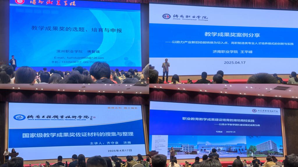 为持续深化职业教育教学改革,总结交流先进经验,提升职业教育教学成果奖培育与申报质量,在济南市教育局的支持下,由济南市职业教育与成人教育研究所举办的“职业教育教学成果奖培训班”于4月16日—18日在山东大厦·清照酒店顺利举办,学校副校长宋艳艳带队,教务处及二级学院一行6人参会。