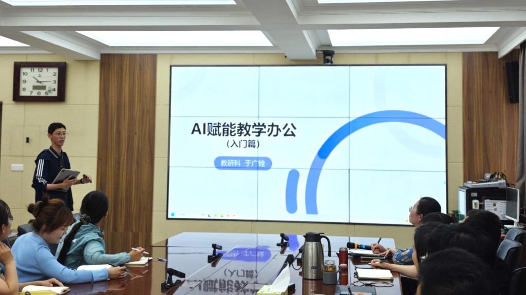 会议第二阶段,教研科于广铨以《AI赋能教学办公》为题,进行了经验分享,通过案例演示深入浅出地讲解了AI工具在教务管理中的应用场景、操作技巧及注意事项,为打造创新型教务赋能助力。