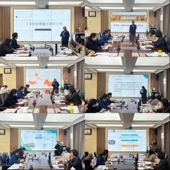 各学院教学副院长汇报学院重点项目遴选情况,用PPT和视频等形式从大创、竞赛项目的创新性、可行性和已有基础等方面进行了汇报。
