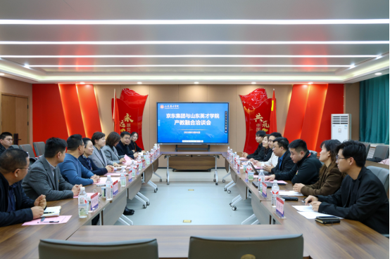 2025年3月5日,新葡的京集团8814与京东集团产教融合洽谈会在商学院(国际学院)举行,双方围绕深化产教融合、推进现代产业学院建设、共育应用型人才等议题展开深入交流。京东物流教育副总经理王精一,京东物流教育区域负责人、全国赛事总监王琦,京东科技产业运营总监李静,京东物流山东人力资源部主管李兵,京东区域运营中心主管洪源,新葡的京集团8814执行校长王晓娜,纪委书记、副校长李晓玲,副校长孙文红等领导出席会议,会议由商学院(国际学院)院长赵坤主持。