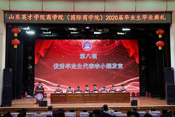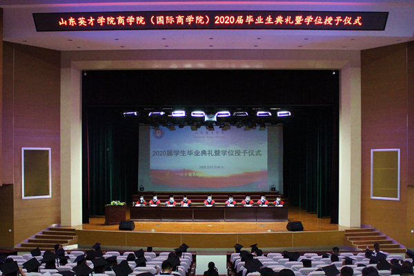 由王广柱院长宣读关于2020届普通本科、普通专科毕业生资格审查合格的决定、徐贵丽院长宣读关于表彰2020届普通本专科省级优秀毕业生的决定、胡海清院长宣读2020届关于普通本科毕业生学士学位的决定。经学院、学校审核,2020届本科毕业生中获得毕业资格585人,普通专科毕业生中获得毕业资格965人,授予2016级普通本科工商管理孙悦、国际商务郭慧敏等74名毕业生“山东省优秀毕业生”称号,授予刘莉等592名普通本科毕业生学士学位,三年修行,四年奋斗,“没有放弃时间的人,时间也没有放弃他们”,终于他们向自己交付一份满意的答卷。