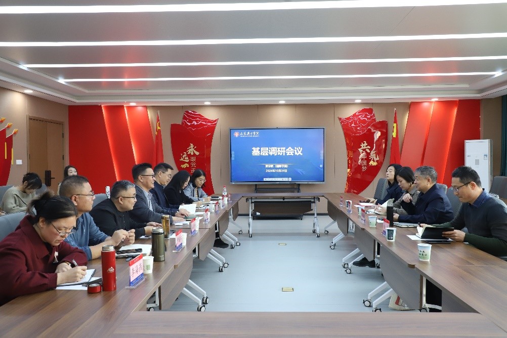 张星臣校长还对商学院(国际学院)的工作进行了调研,考察了商学院(国际学院)实验教学中心,听取了学院领导班子的工作汇报,与学院骨干教师展开了深入探讨与交流。张校长为学院学科专业发展、师资队伍建设、人才特色培养、国际合作等各个方面提出了诸多建议。商学院(国际学院)将根据建议进一步优化学科专业建设,以人才产出和学生就业为导向,坚持产教融合,扩大开放办学,提高社会服务能力,积极拓展国际合作,着力打造齐鲁新商科应用型人才培养基地。