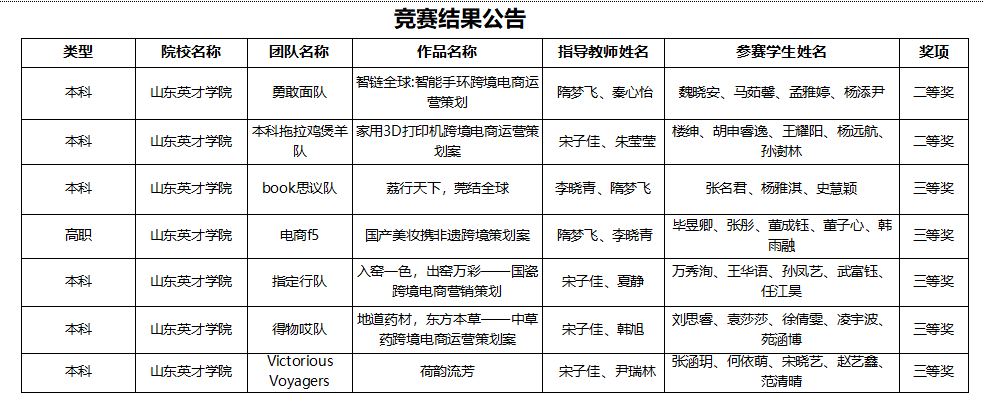 尤为一提的是,在高职组比赛中,由商学院隋梦飞老师与李晓青老师联合指导的“国产美妆融合非遗文化跨境营销策划案”项目荣获三等奖,这一荣誉进一步证明了商学院在高等职业教育领域内的教学水平和创新能力同样不容小觑。