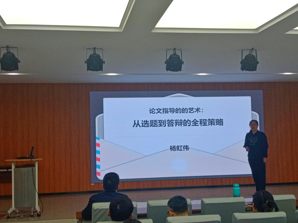 为进一步提升商学院本科毕业设计(论文)质量,提高毕业设计(论文)指导教师的指导能力和水平,商学院(国际学院)于10月29日举办了“论文指导的艺术:从选题到答辩的全程策略”的专项讲座。本次讲座由商学院财务管理系财务管理专业负责人杨虹伟教授主讲,商学院(国际学院)各系部毕业设计(论文)指导教师参加。