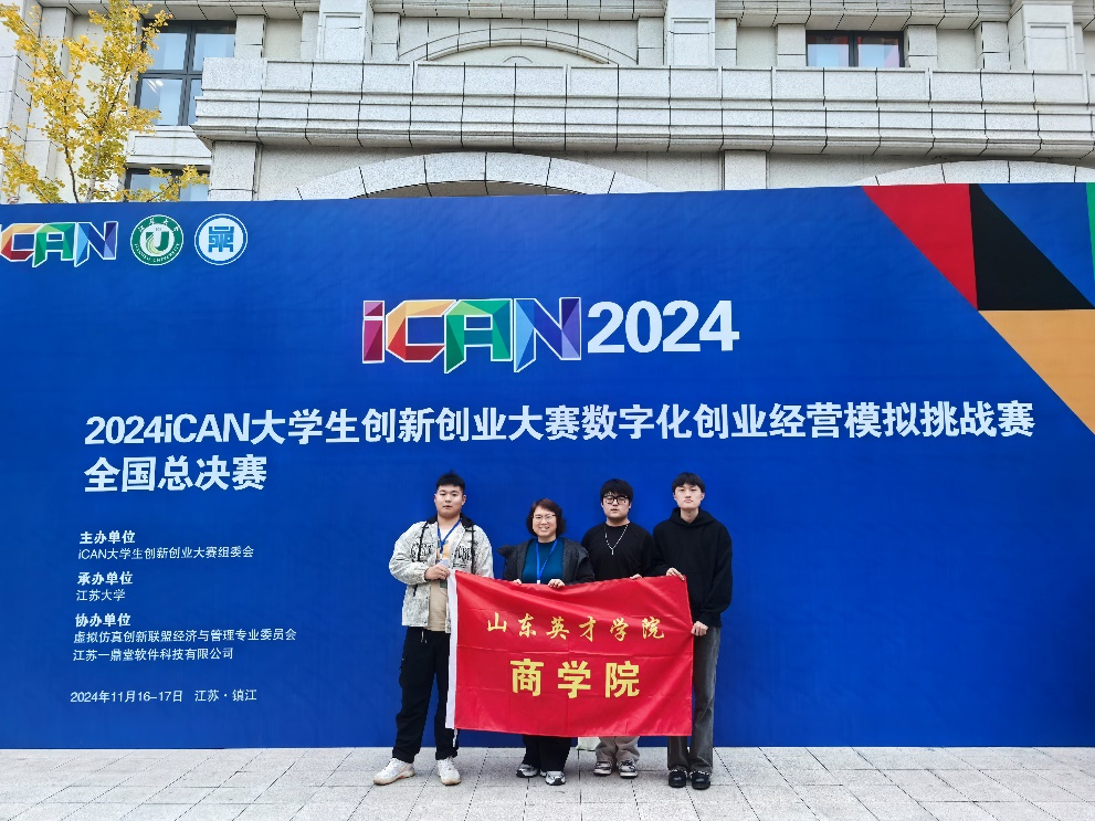 商学院花果山队(学生:张淯淞、邵宇皓、王佳珞,指导老师:王素玲、刘尧)和I'm OK 队(学生:王琳莹、崔盛子淇、吴思彤;指导老师:王素玲、殷永生)两支队伍获得山东省决赛二等奖;星辰大海队(学生:李志阳、白刚渝、刘启智;指导老师:王素玲、阙娜);皮蛋队(学生:贾翔宇、李森、赵昱丞;指导老师:王素玲、杨兴辉);有请下一队(学生:王荣、王甜心、姜翌沁;指导老师:姜丽娟、祭艳丽)三支代表队获得山东省决赛三等奖3项。花果山队代表队经过山东省决赛、国初赛层层筛选,顺利闯入全国总决赛,并最终夺得全国总决赛二等奖。