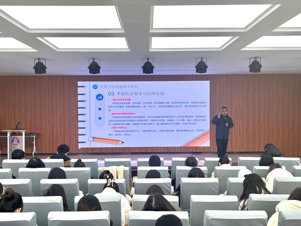 谷振涛教授以其丰富的科研经验和深厚的学术功底,为青年教师们带来了精彩的分享。在科研规划发展方面,谷振涛教授指出,青年教师是商学院(国际学院)科研工作的生力军,要不断提高自己的科研能力和水平。他详细介绍了科研项目的申报流程、研究方法以及论文撰写等关键环节,并鼓励青年教师积极申报各级科研项目,参与高水平的学术交流活动,不断提升自己的科研素养和影响力。在科研规划发展方面,谷振涛教授结合自身的科研经历,为青年教师提供了宝贵的建议。他提到,青年教师应立足自身专业背景,明确研究方向,制定切实可行的科研计划。同时,要积极关注学术前沿动态,参与学术交流活动,不断拓展学术视野。