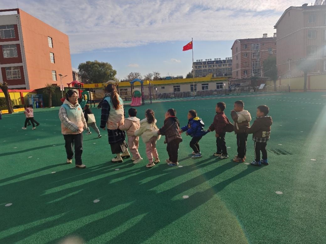 志愿者们帮助小朋友穿上衣,小朋友们主动伸出手臂,轻轻拉好衣链,确保衣服穿得舒适。之后,志愿者们带领小朋友们在操场玩游戏,整个过程充满了欢声笑语。不仅锻炼了身体协调和反应能力,还增强了彼此之间的友谊。