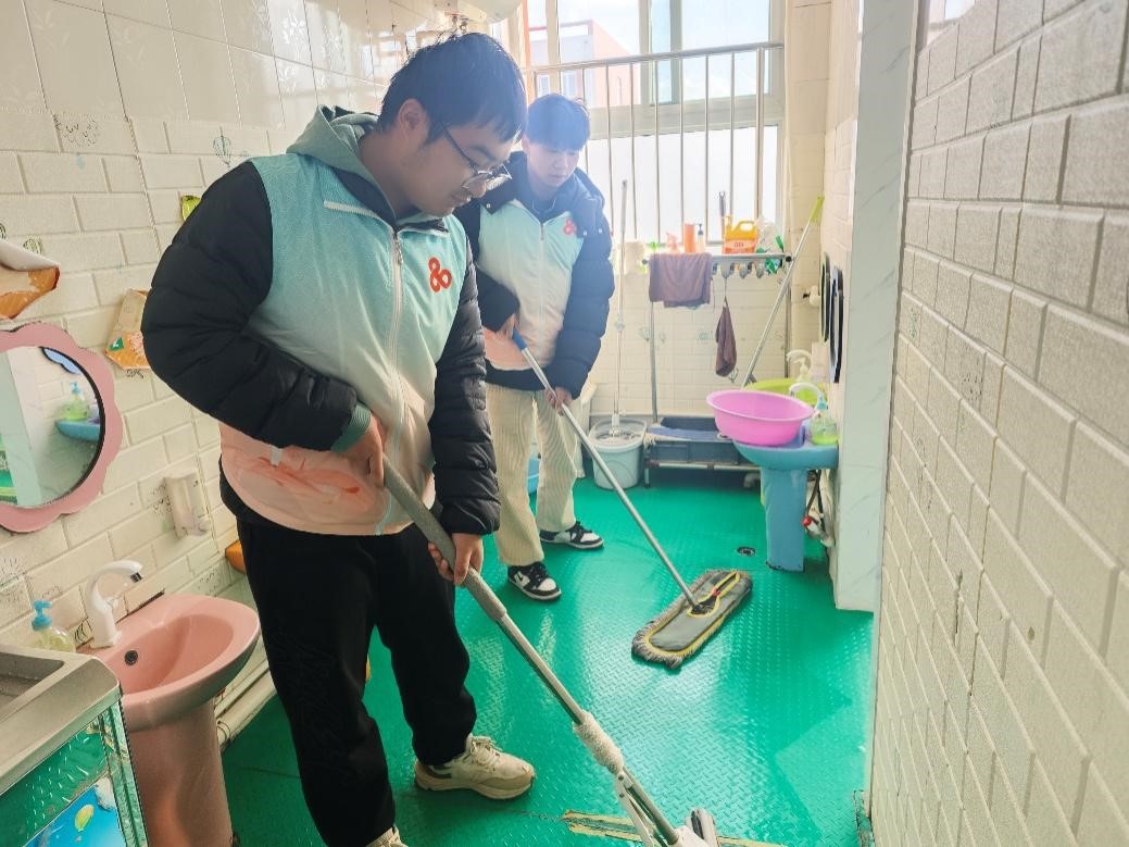 为给孩子们提供一个安全、卫生、舒适的学习和生活环境,志愿者们分工明确,密切配合,对教室的进行了清洁。志愿者们用拖把反复擦拭地面,直至光洁如新。为幼儿园增添了一份亮丽,以实际行动诠释对孩子们的关爱。