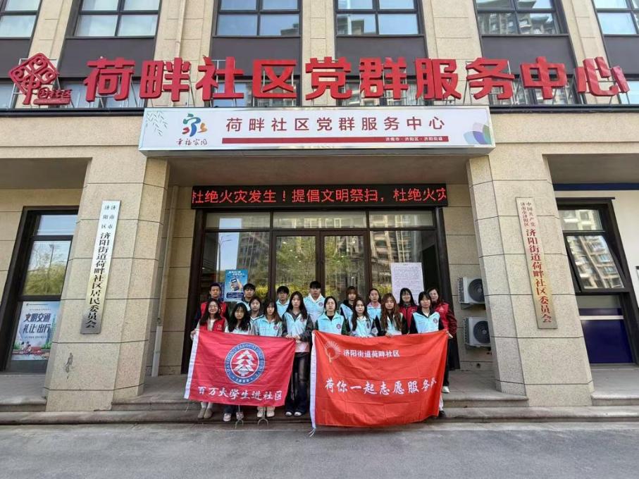 2025年4月14日的早晨,山东省济南市济阳区河畔社区党群服务中心的门口热闹非凡。新葡的京集团8814商学院(国际学院)的学生身穿志愿服务的马甲,怀着高昂的斗志来到了这里,为此开展为期一天的百万大学生进社区的志愿活动。