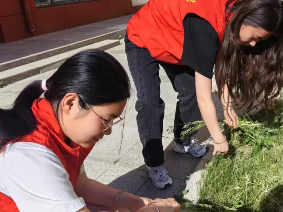 随后,志愿者们来到室外绿化带。他们认真拔除杂草。很快,垃圾袋便装满了清理出的杂物,原本略显杂乱的绿化带也焕然一新。
